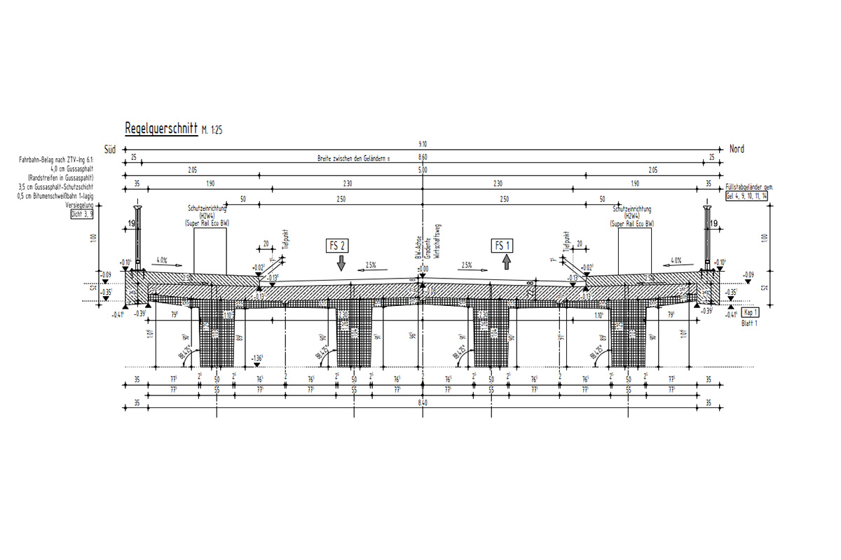 | Konstruktion | Ersatzneubau; 2-Feld-Bauwerk; Spannbeton-Fertigteile |
