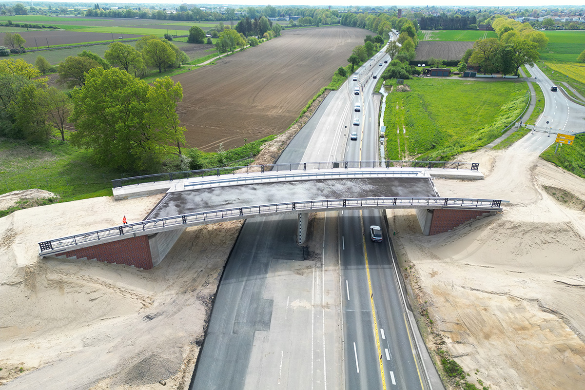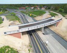 | Konstruktion | 2-Feld-Brücke, längsvorgespannte Straßenbrücke in Ortbetonbauweise |
