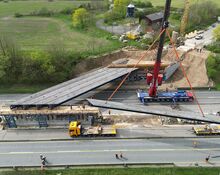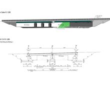 | Konstruktion | 2-Feld Brückenbauwerk in Stahlverbundbauweise (VFT-Träger) |