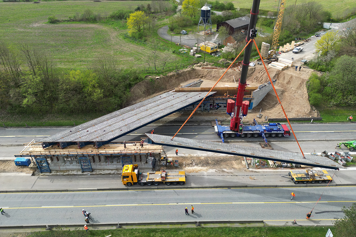 Das Bauvorhaben umfasst den Ersatzneubau der Brücke BW 705 sowie den Rückbau des bestehenden Bauwerks. Die Überquerung der BAB 7 erfolgt dabei an der Anschlussstelle Nr. 7 „Owschlag“. Besonders auffällig ist die Schiefwinkligkeit des Bauwerks aufgrund des geringen Kreuzungswinkels. Der Ersatzneubau wird als zweifeldriges Brückenbauwerk in Stahlverbundbauweise (VFT®) ausgeführt